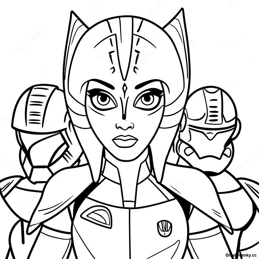 Stáhněte si tisknutelné PDF omalovánky Ahsoka Tano S Klonovými Vojáky Omalovánka