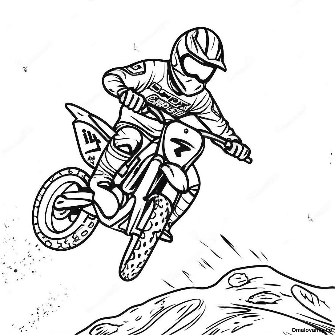Stáhněte si tisknutelné PDF omalovánky Barevný Jezdec Na Terénním Motocyklu Supercross Omalovánka