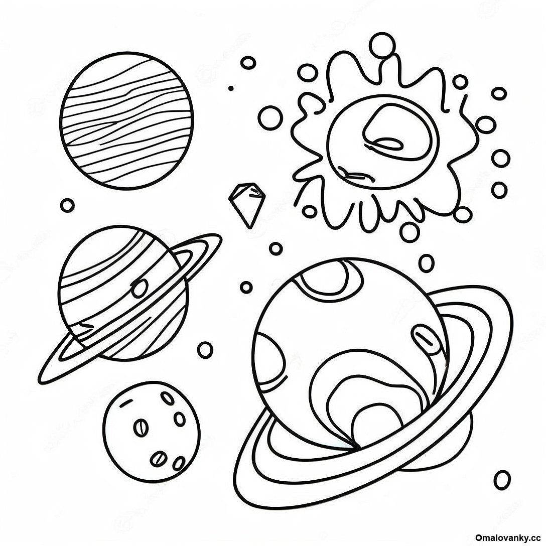 Stáhněte si tisknutelné PDF omalovánky Barevný Sluneční Systém Omalovánka