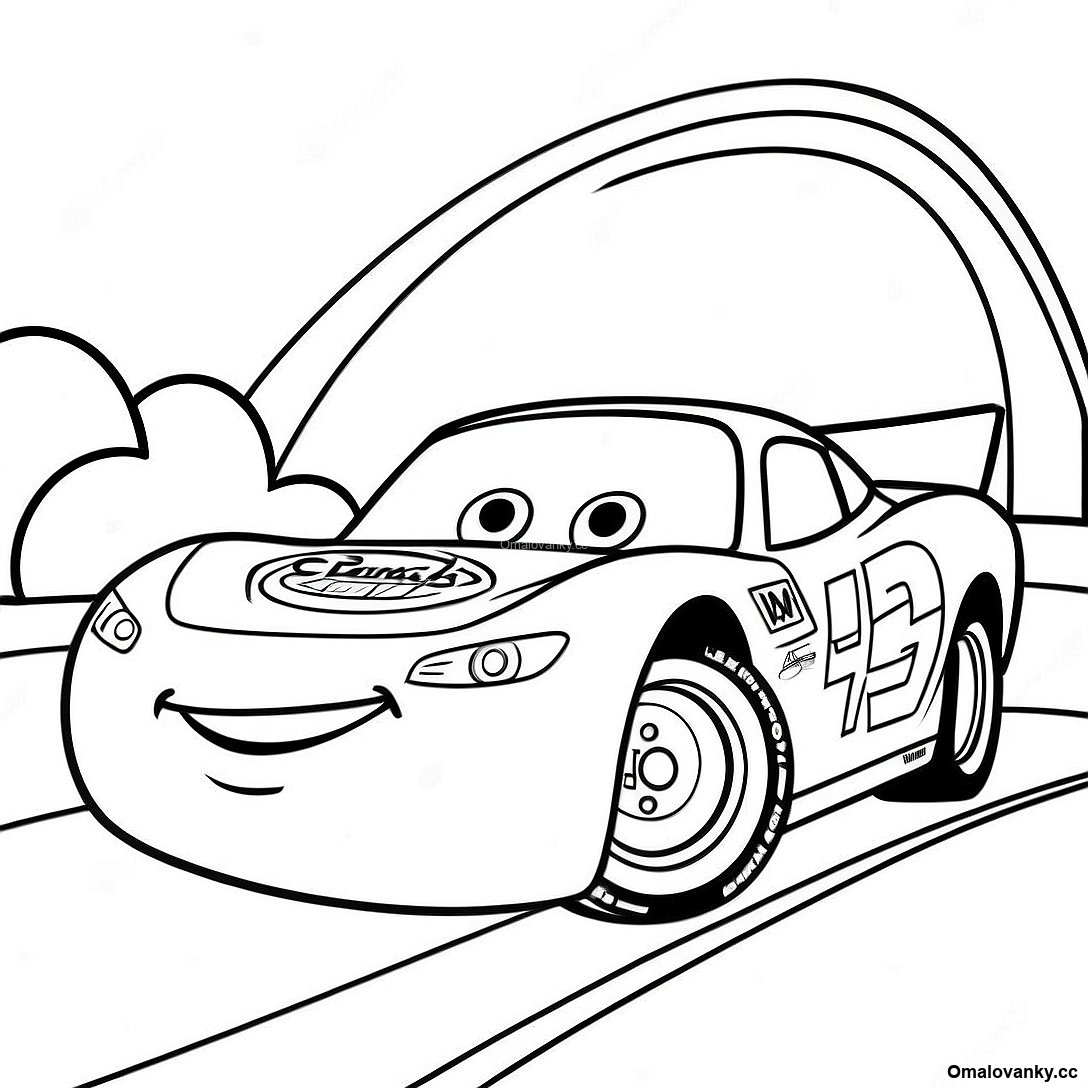 Stáhněte si tisknutelné PDF omalovánky Blesk Mcqueen Závodní Omalovánka