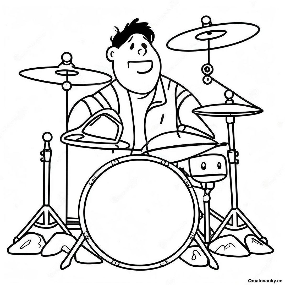 Stáhněte si tisknutelné PDF omalovánky Bubeník V Rockové Kapele Omalovánka
