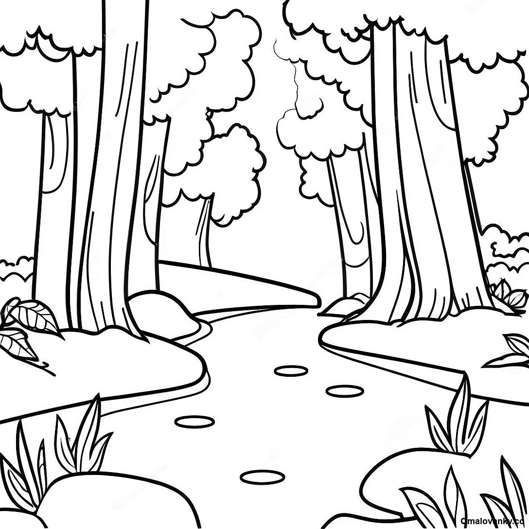Stáhněte si tisknutelné PDF omalovánky Bujná Lesní Krajina Omalovánka
