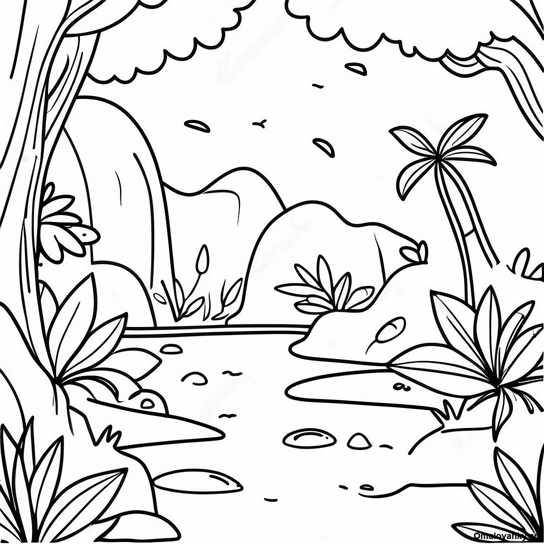 Stáhněte si tisknutelné PDF omalovánky Bujný Džunglový Ekosystém Omalovánka
