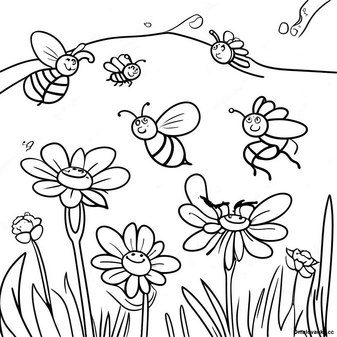 Stáhněte si tisknutelné PDF omalovánky Bzučící Včely Na Omalovánce
