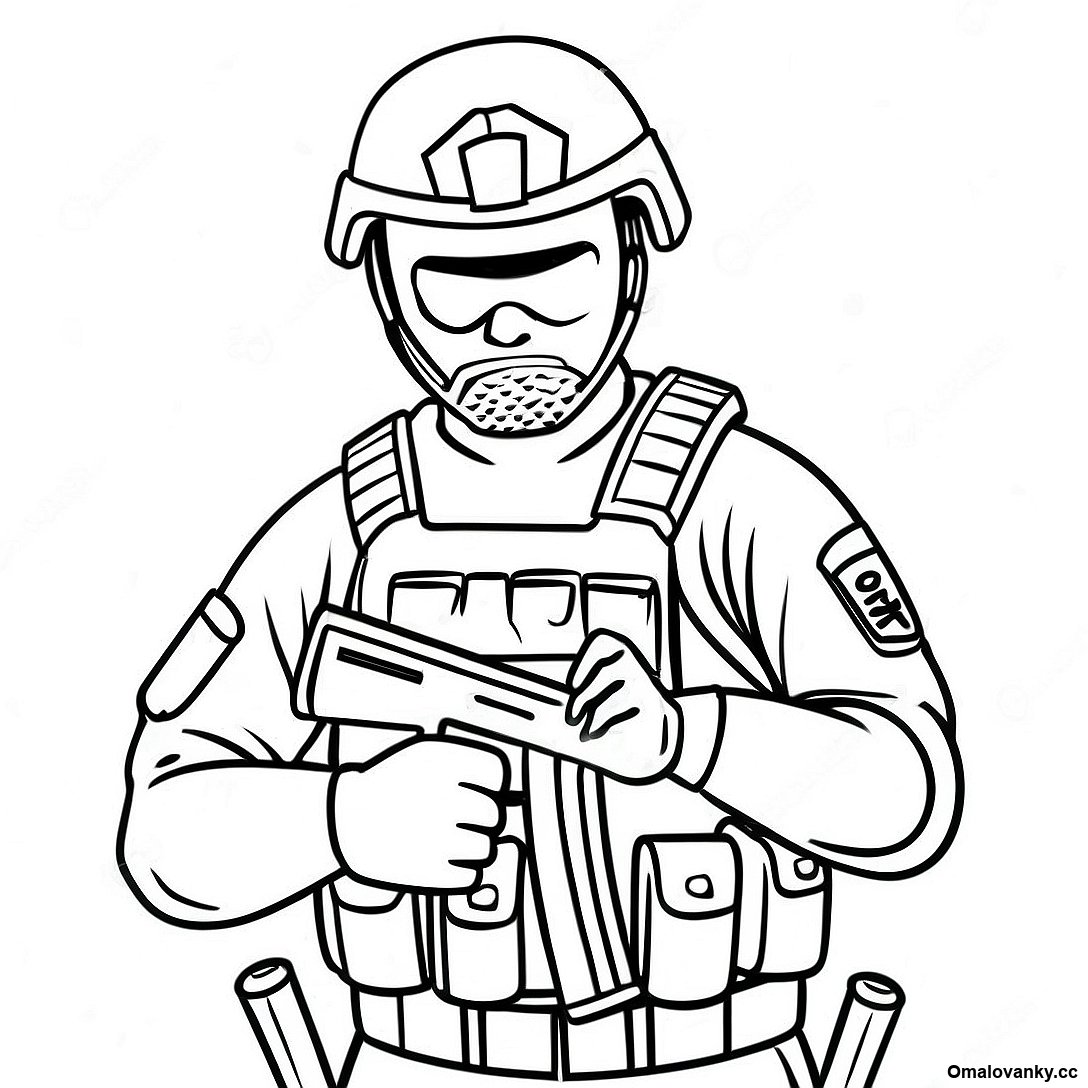 Stáhněte si tisknutelné PDF omalovánky Člen Swat V Akci Omalovánka
