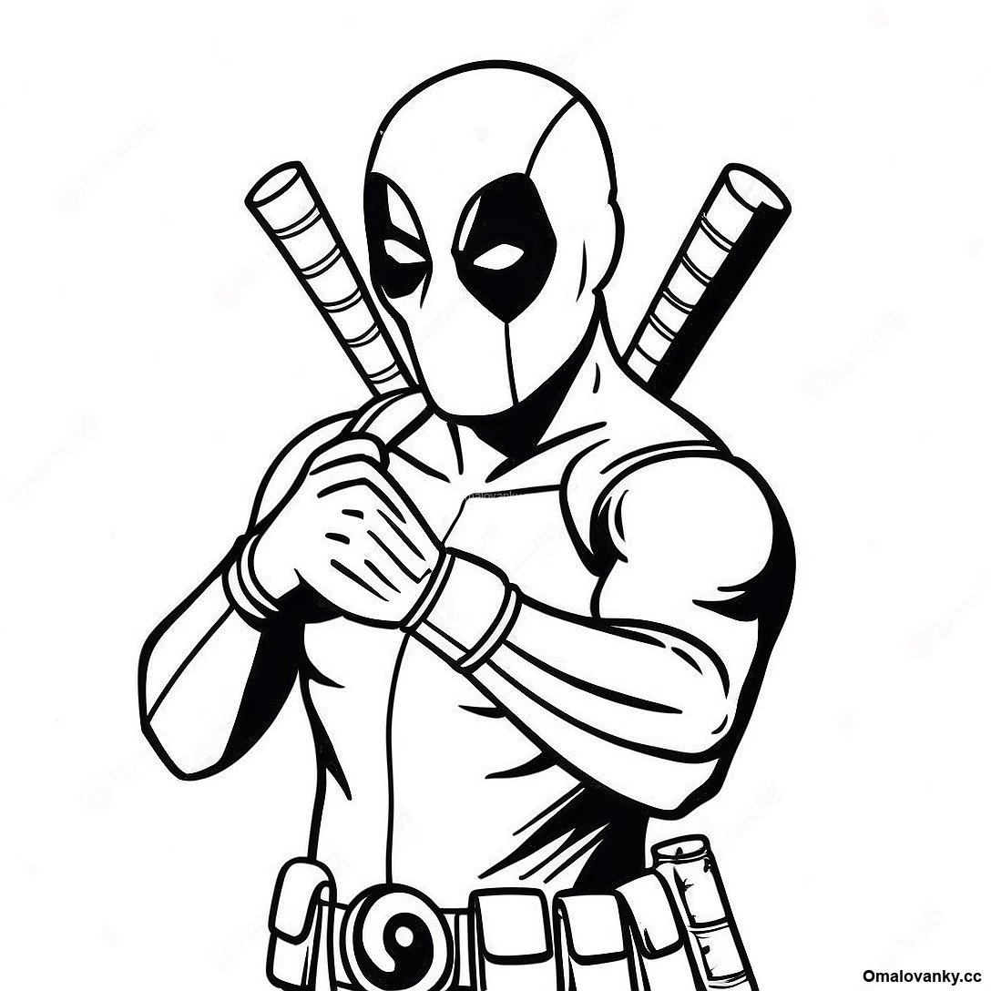 Stáhněte si tisknutelné PDF omalovánky Deadpool V Akci Omalovánka