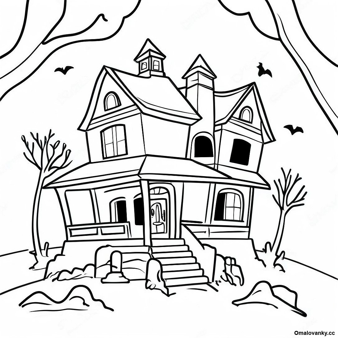 Stáhněte si tisknutelné PDF omalovánky Děsivý Strašidelný Dům Omalovánka