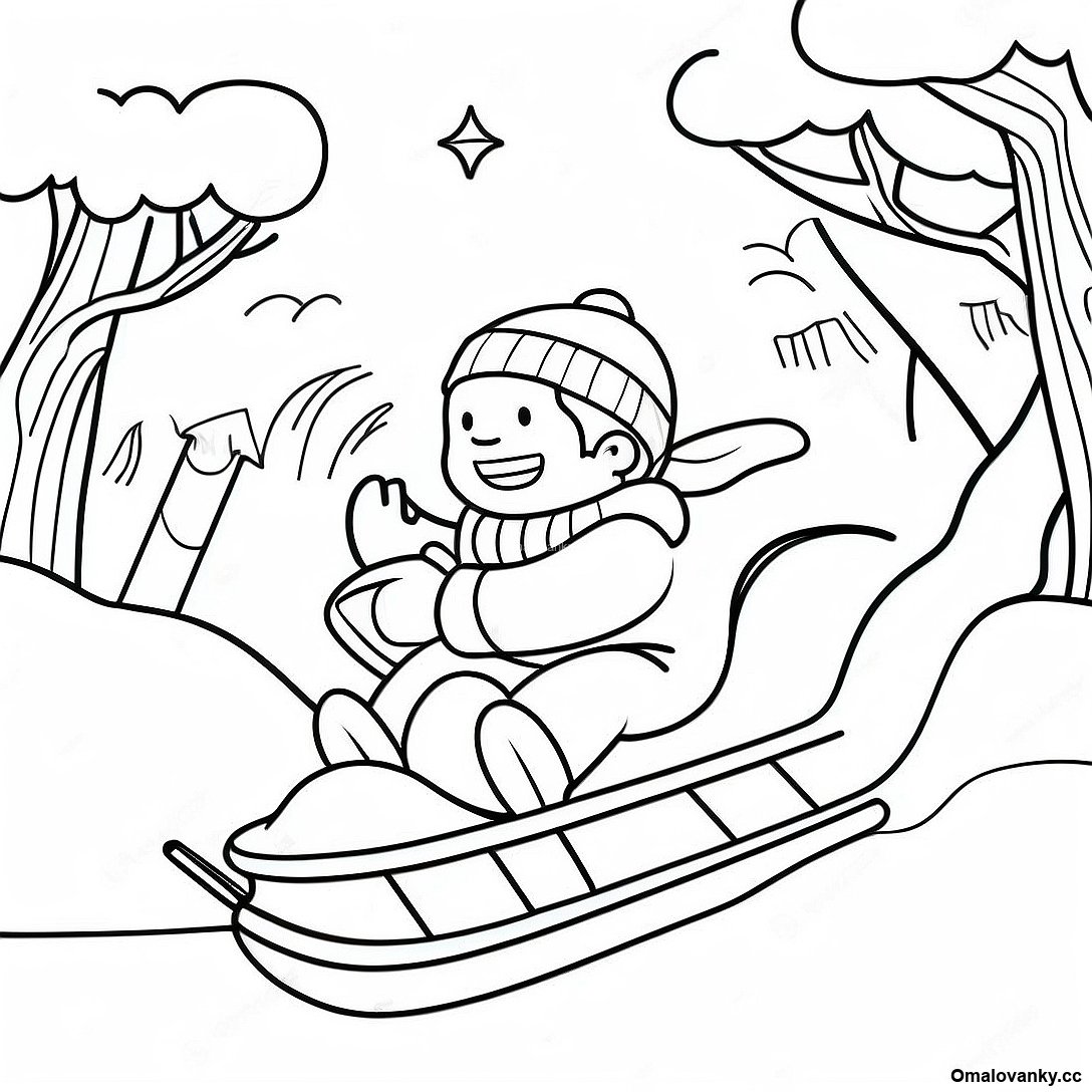 Stáhněte si tisknutelné PDF omalovánky Dobrodružná Scéna Sáňkování Omalovánka