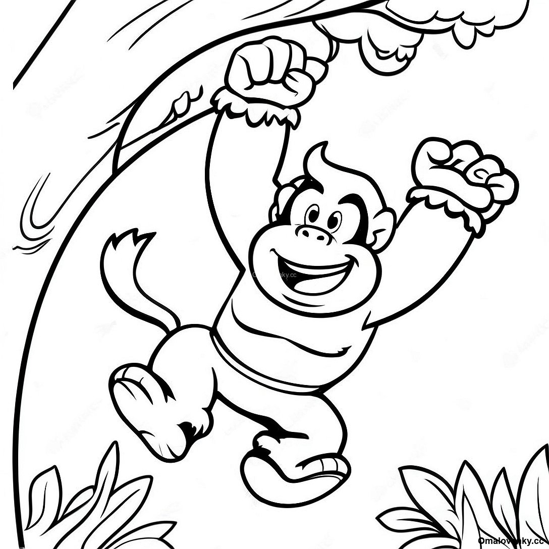 Stáhněte si tisknutelné PDF omalovánky Donkey Kong Se Houpe Na Omalovánce Ze Stromu