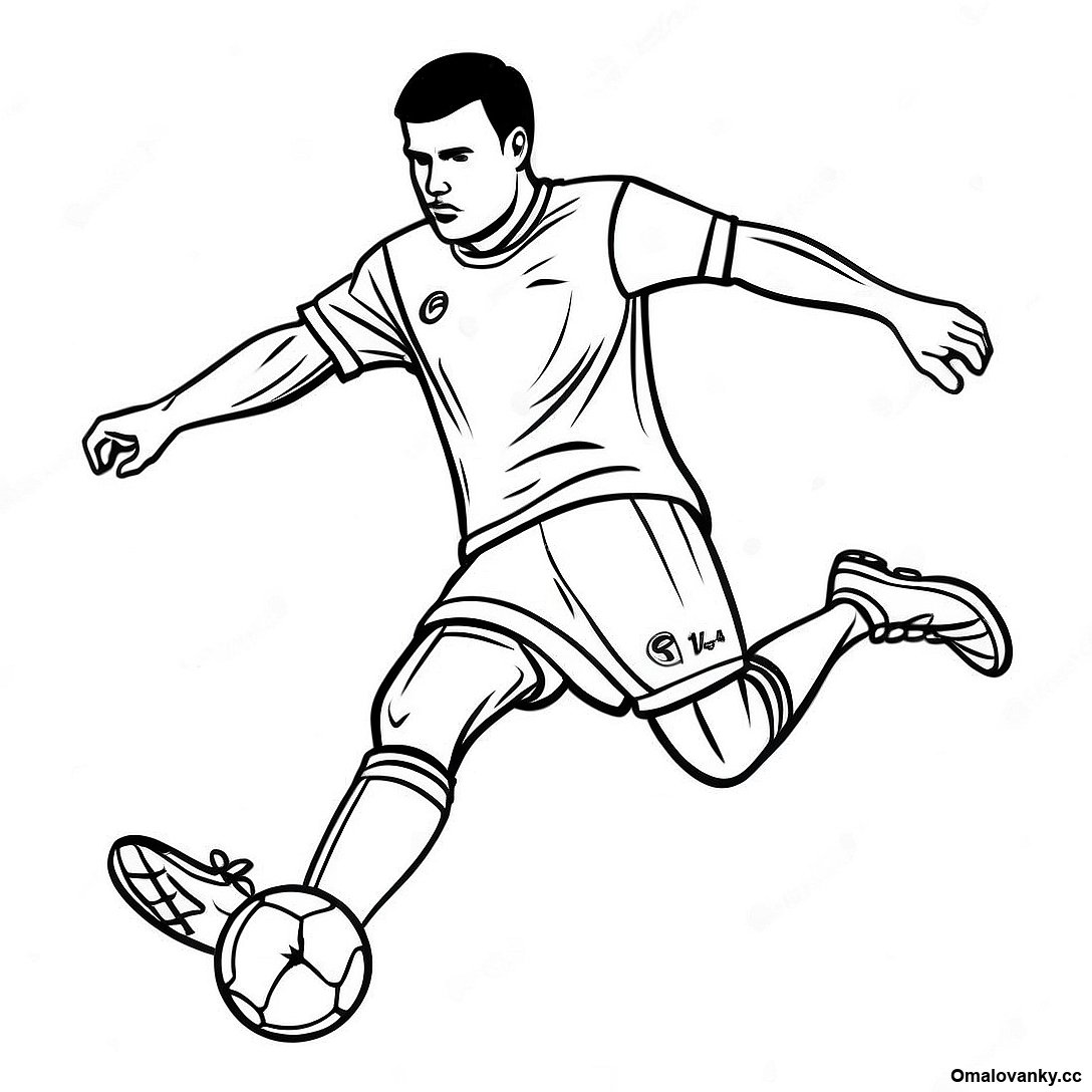 Stáhněte si tisknutelné PDF omalovánky Fotbalista Kopající Míč Omalovánka