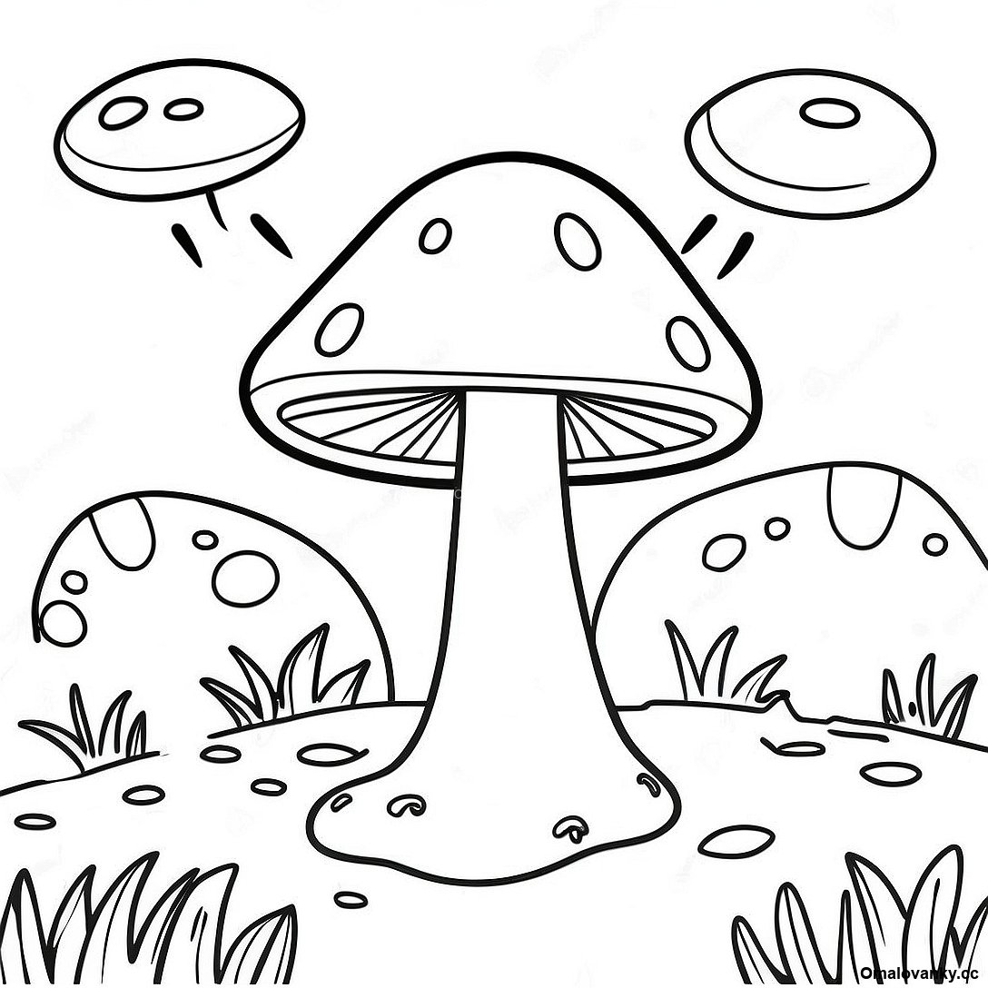 Stáhněte si tisknutelné PDF omalovánky Groovy Houbová Krajina Omalovánka