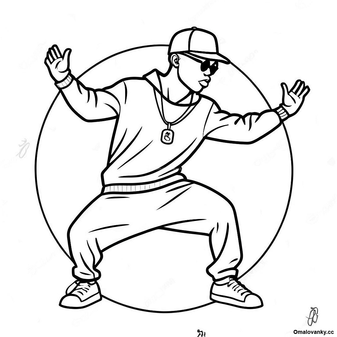 Stáhněte si tisknutelné PDF omalovánky Hip Hop Tanečnice Předvádějící Triky Omalovánka