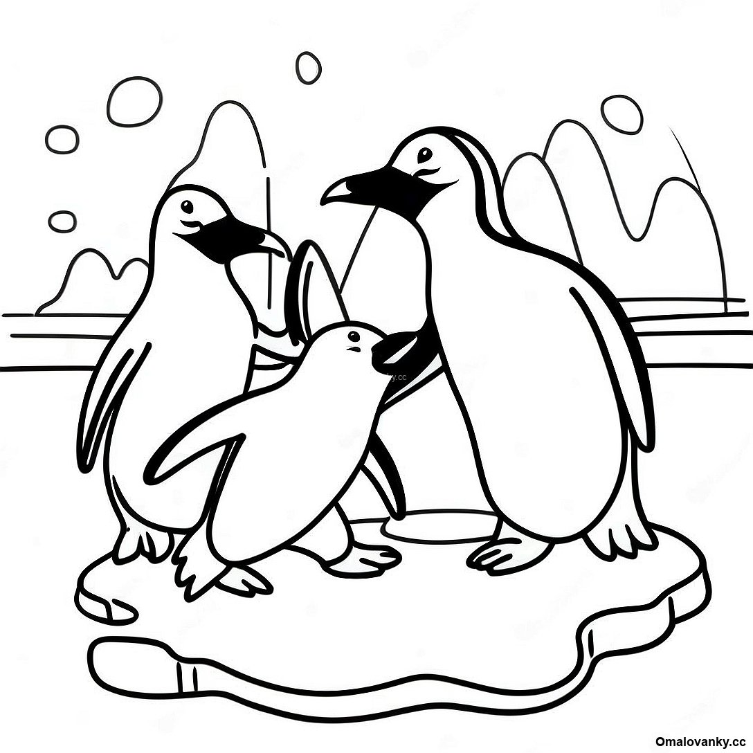 Stáhněte si tisknutelné PDF omalovánky Hravé Tučňáci Na Ledu Omalovánka