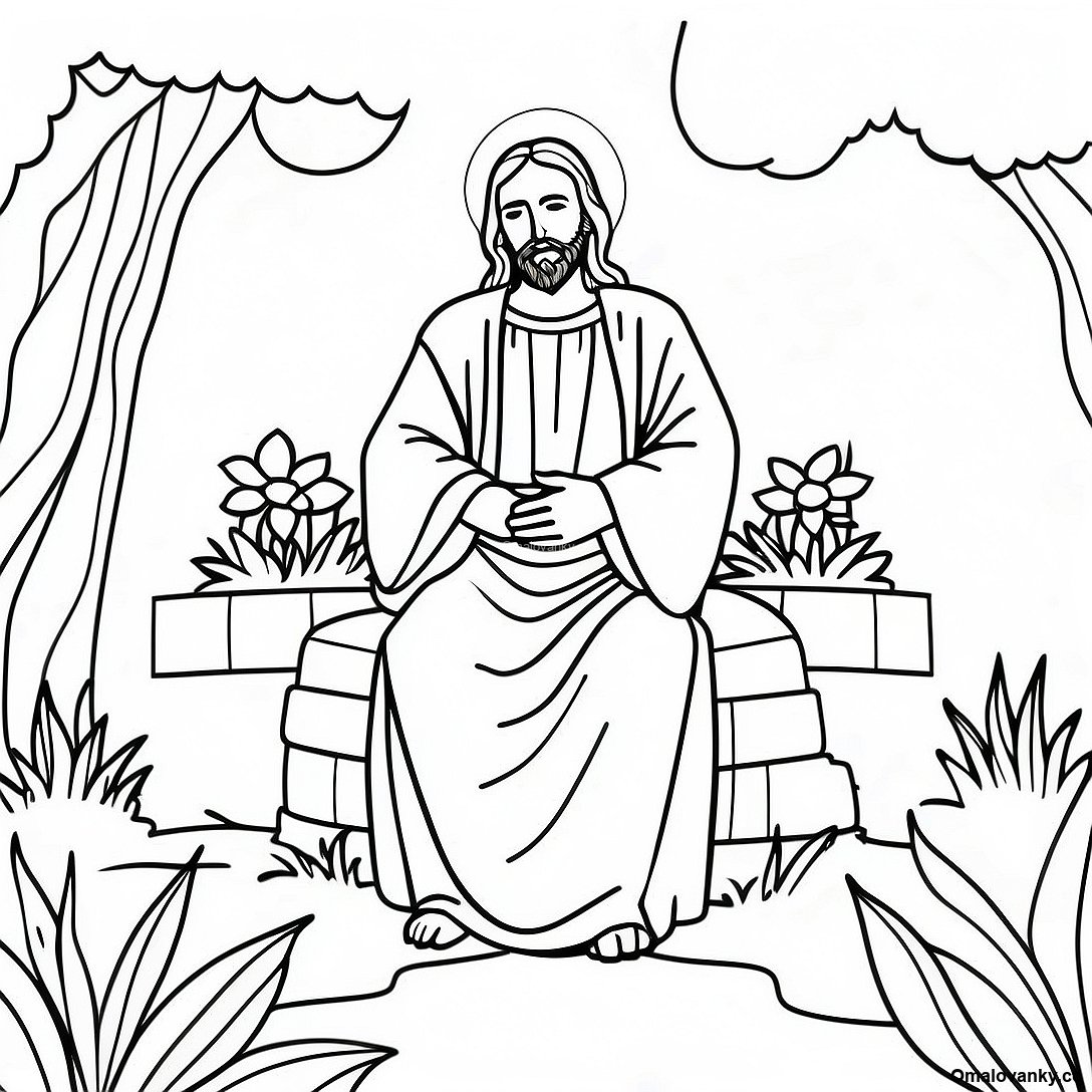 Stáhněte si tisknutelné PDF omalovánky Ježíš V Klidné Zahradě Omalovánka