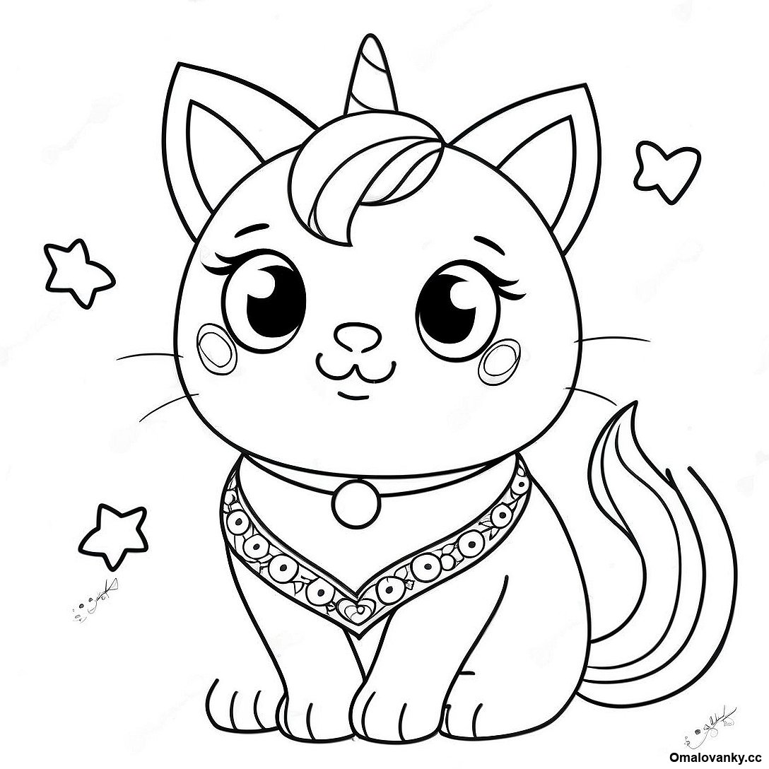 Stáhněte si tisknutelné PDF omalovánky Jiskřivá Kočka Jednorožec Omalovánka