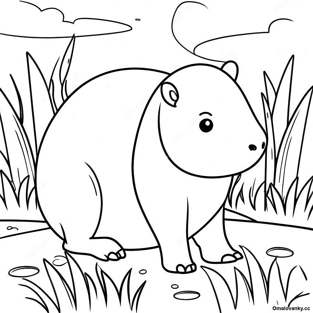 Stáhněte si tisknutelné PDF omalovánky Kapybara Jí Trávu Omalovánka