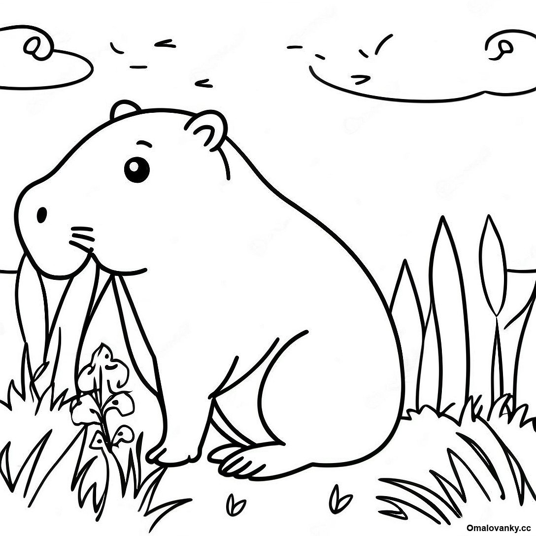 Stáhněte si tisknutelné PDF omalovánky Kapybara Jí Trávu Omalovánka