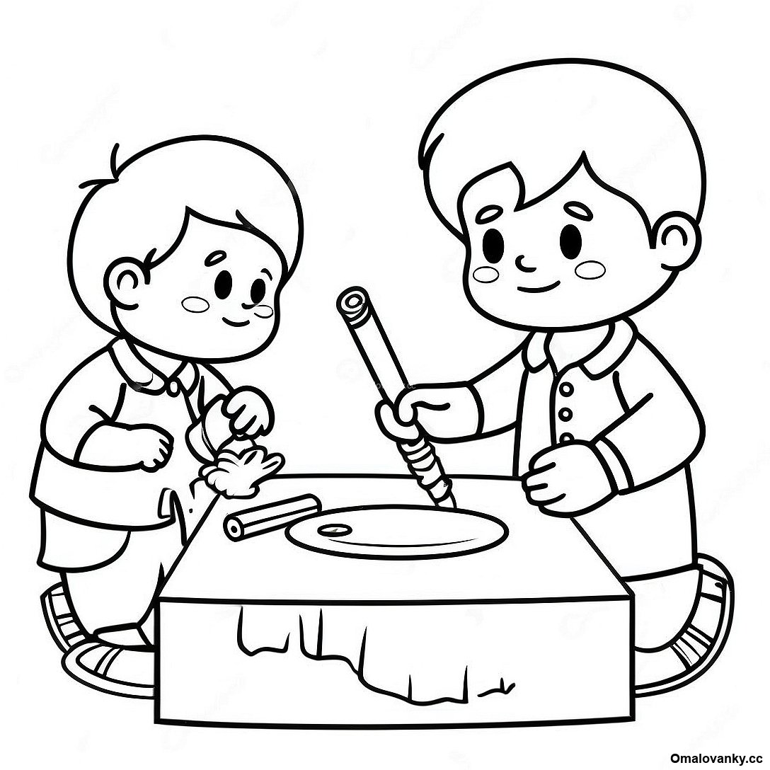 Stáhněte si tisknutelné PDF omalovánky Laskaví Děti Pomáhající Omalovánka