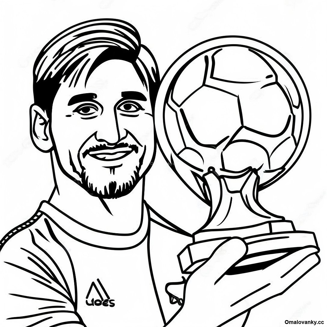 Stáhněte si tisknutelné PDF omalovánky Lionel Messi S Trofejí Omalovánka