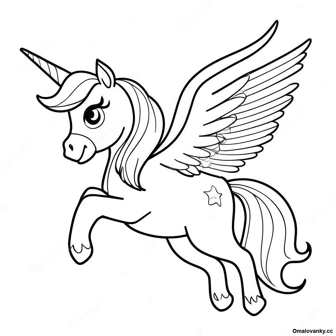 Stáhněte si tisknutelné PDF omalovánky Magický Jednorožec Ve Vzduchu Omalovánka