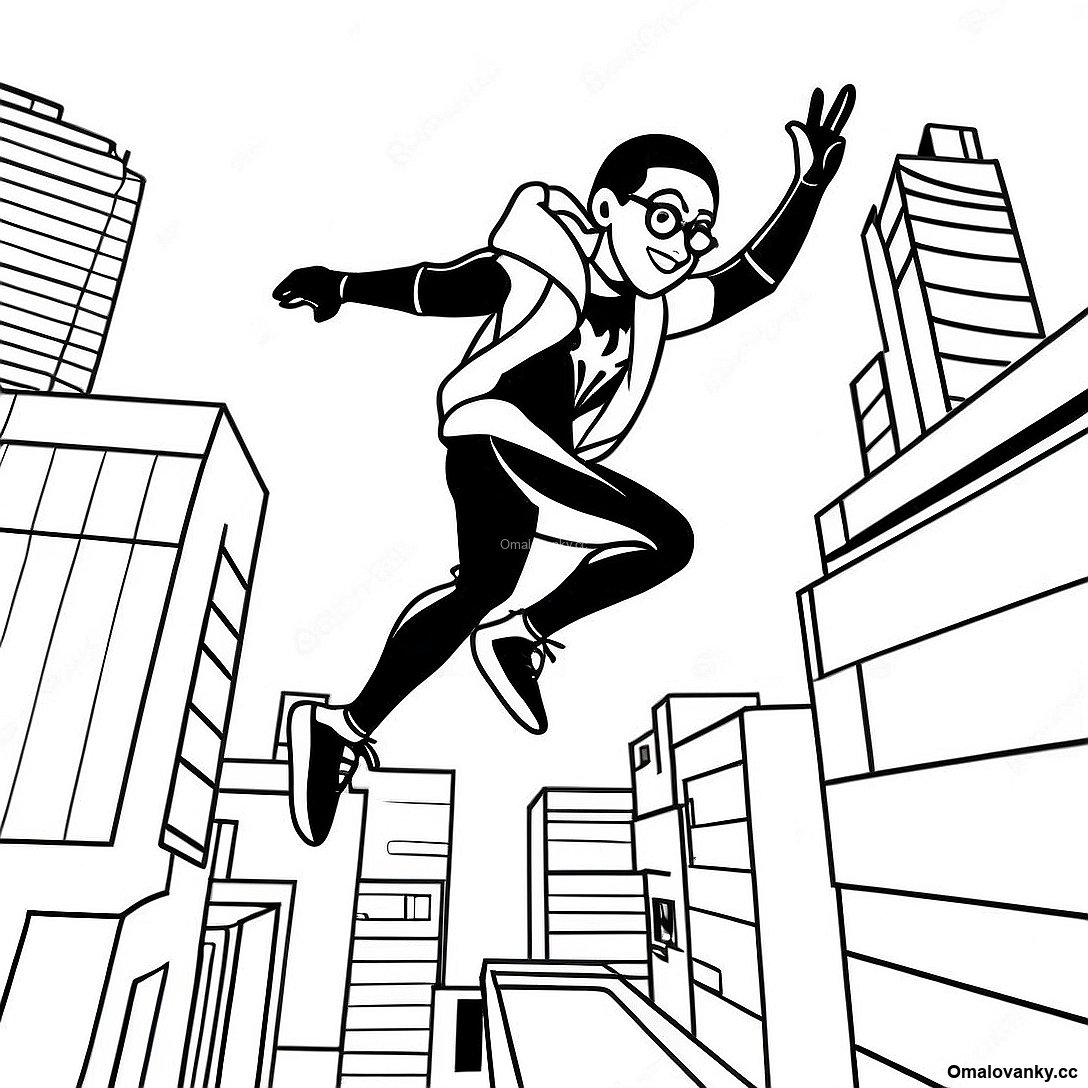 Miles Morales Skakajici Pres Budovy Omalovanka