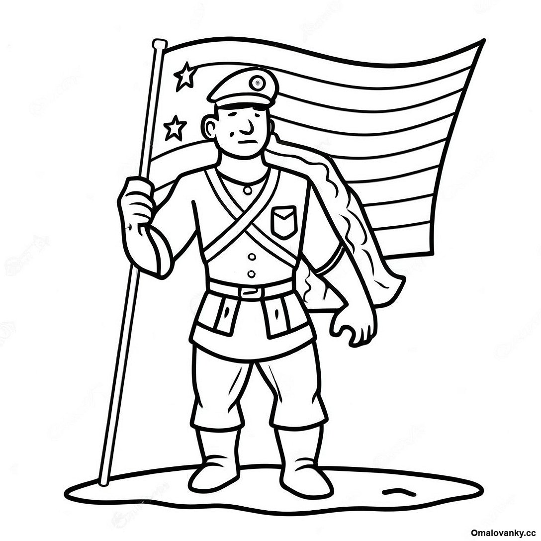 Stáhněte si tisknutelné PDF omalovánky Odvážný Veterán S Vlajkou Omalovánka