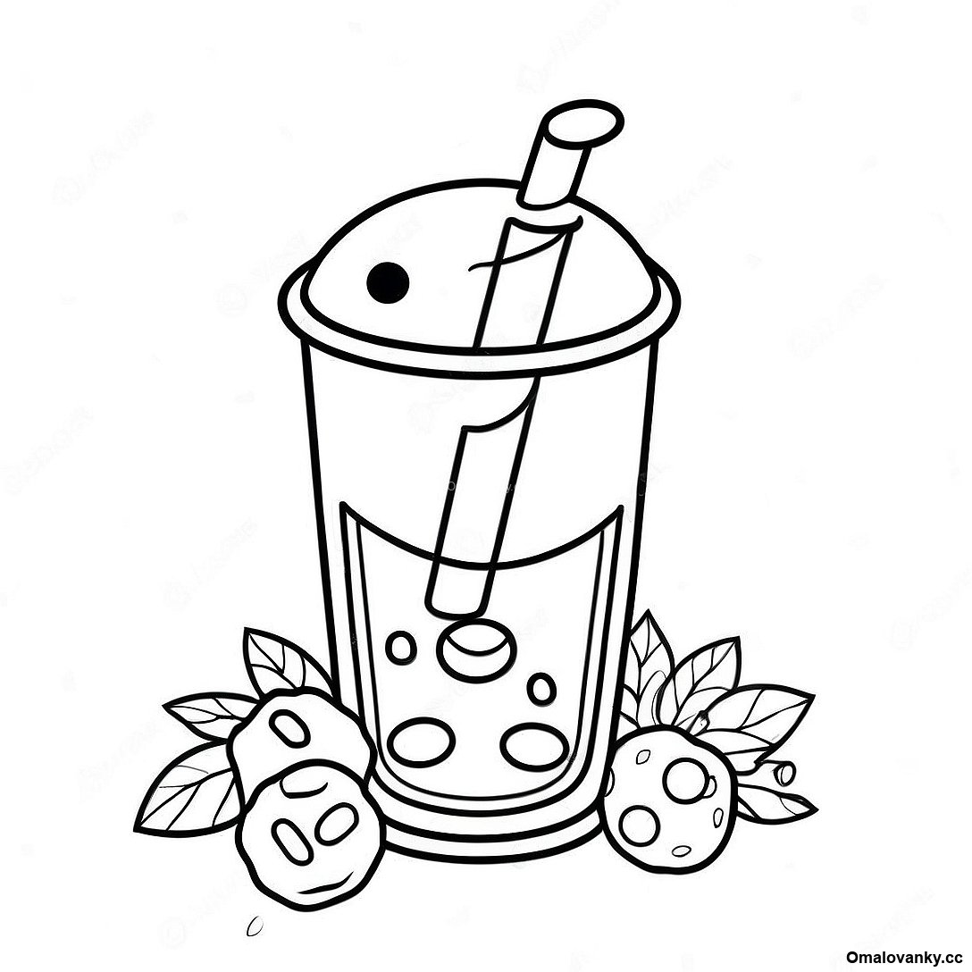 Stáhněte si tisknutelné PDF omalovánky Omalovánka Barevného Bublinkového Čaje Se Brčkem