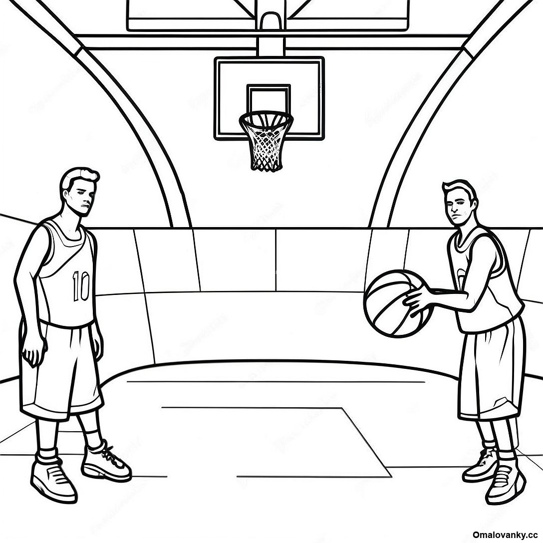 Stáhněte si tisknutelné PDF omalovánky Omalovánka Basketbalového Hřiště S Hráči