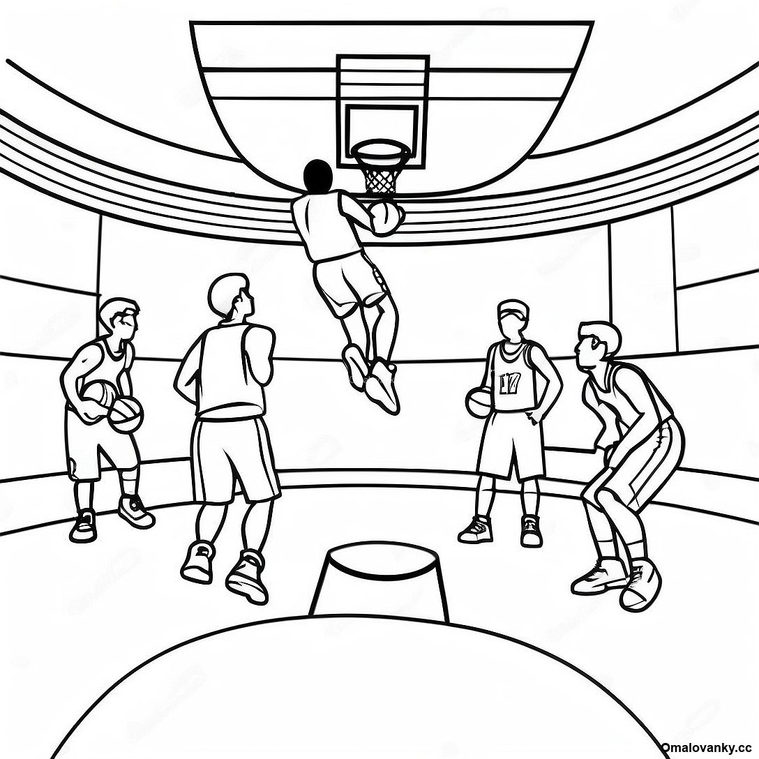 Stáhněte si tisknutelné PDF omalovánky Omalovánka Basketbalového Hřiště S Hráči