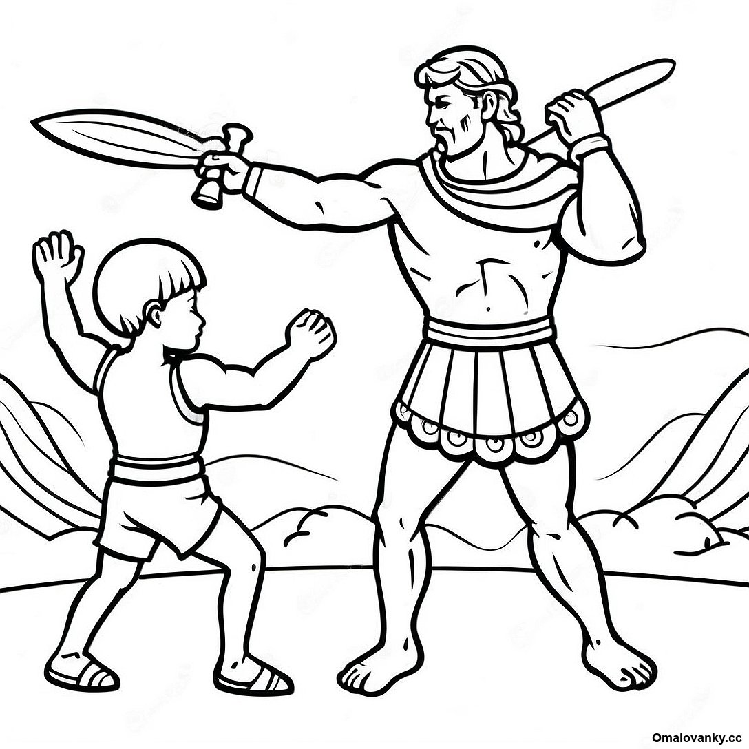 Stáhněte si tisknutelné PDF omalovánky Omalovánka Davida A Goliáše