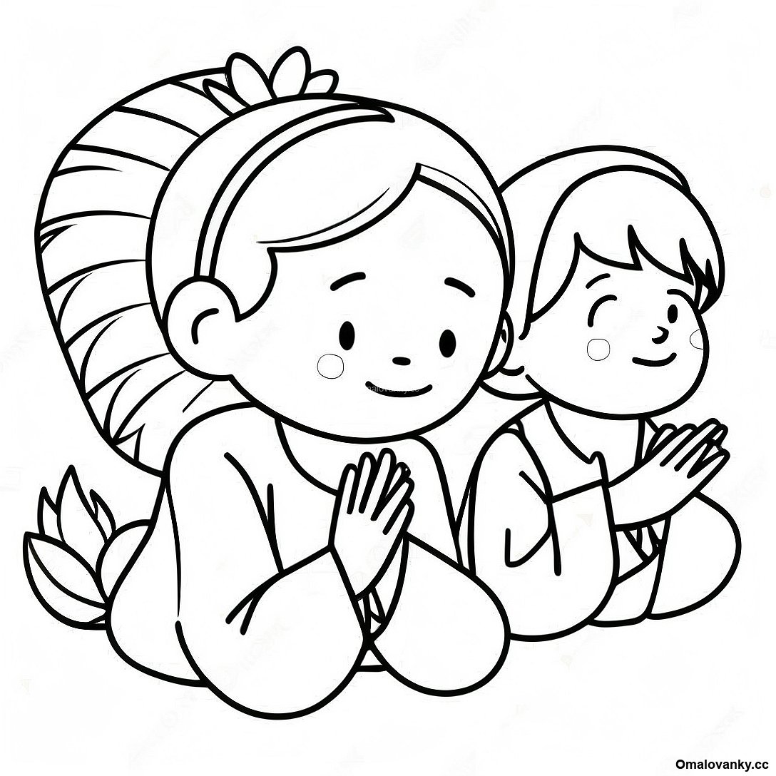 Stáhněte si tisknutelné PDF omalovánky Omalovánka Děti Modlící Se S Vděčností