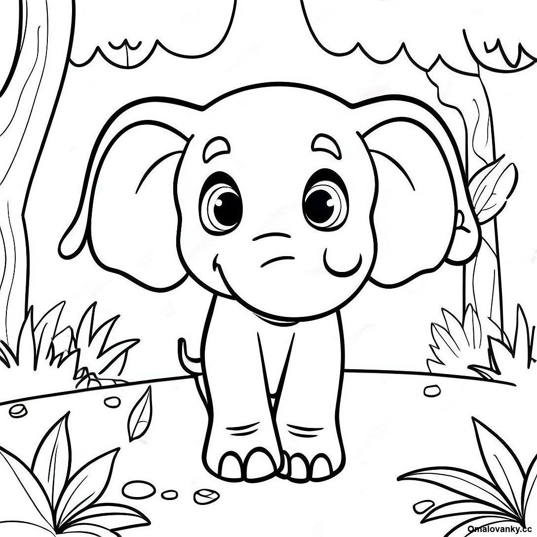 Stáhněte si tisknutelné PDF omalovánky Omalovánka Dobrodružného Opilého Slona Zkoumajícího Džungli
