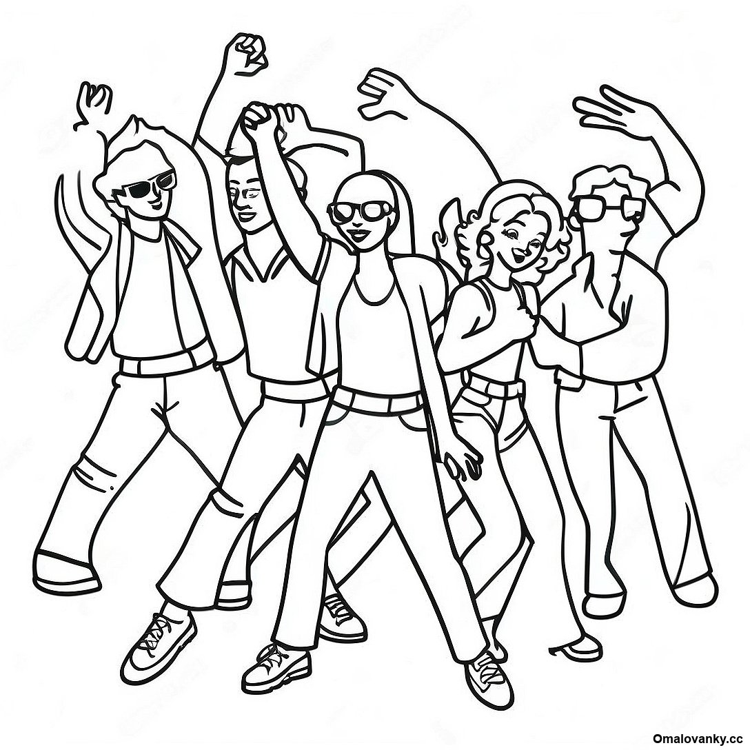 Stáhněte si tisknutelné PDF omalovánky Omalovánka Funky Taneční Párty 80. Let