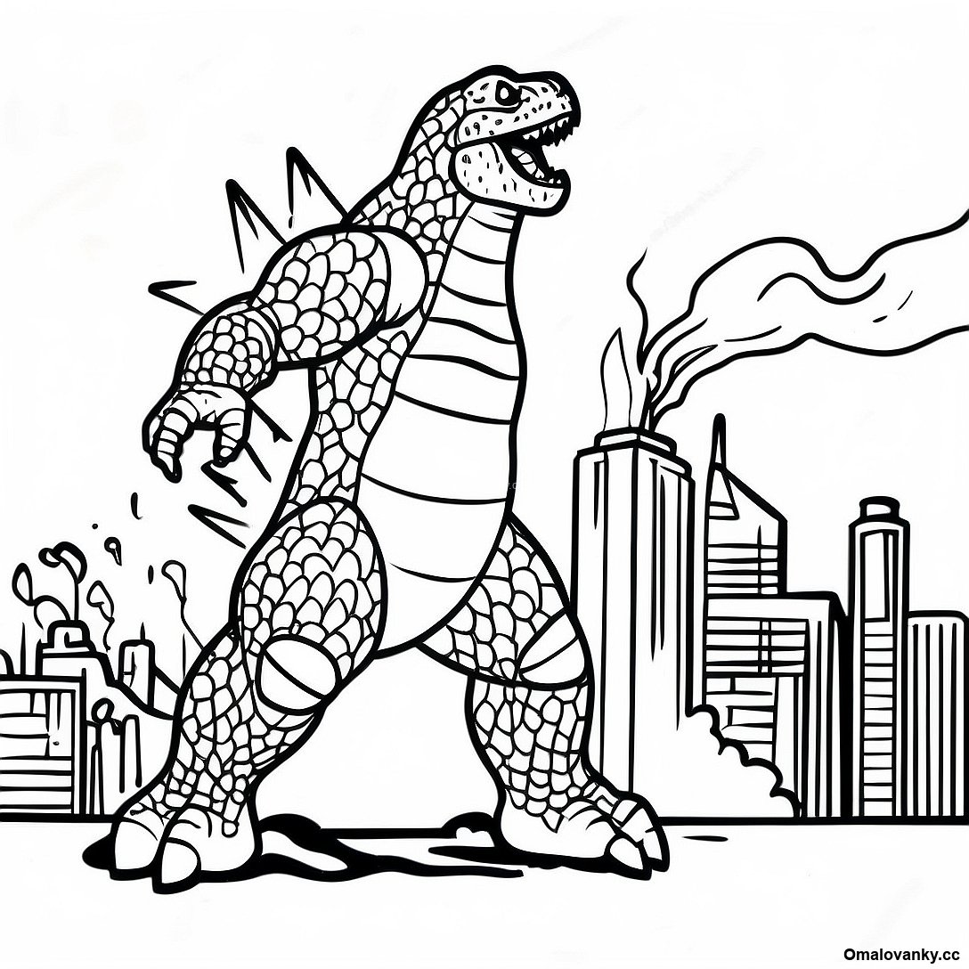 Stáhněte si tisknutelné PDF omalovánky Omalovánka Godzilly, Jak Ničí Budovy