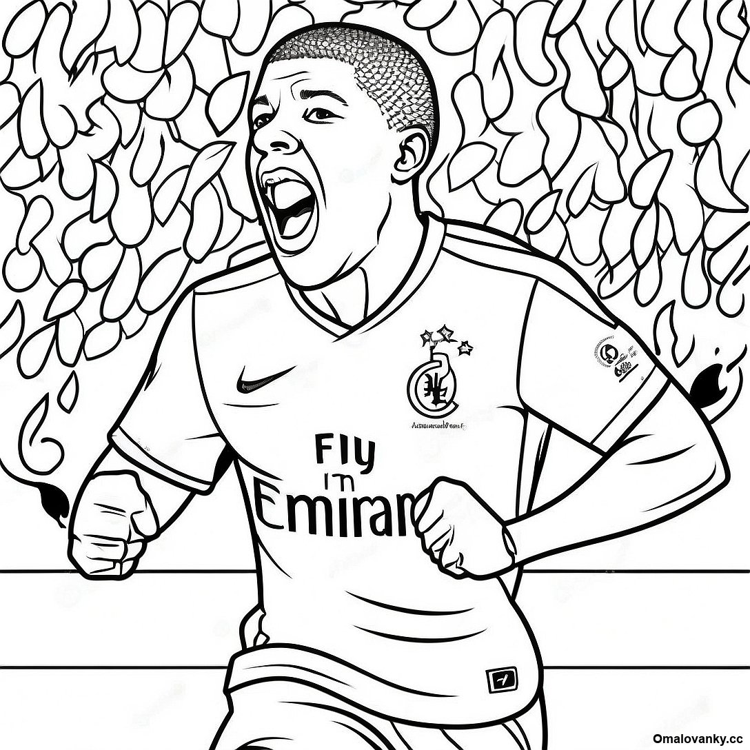 Stáhněte si tisknutelné PDF omalovánky Omalovánka Kyliana Mbappého Oslavujícího Gól