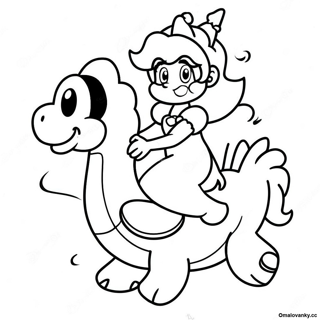 Stáhněte si tisknutelné PDF omalovánky Omalovánka Princezny Peach Na Yoshi