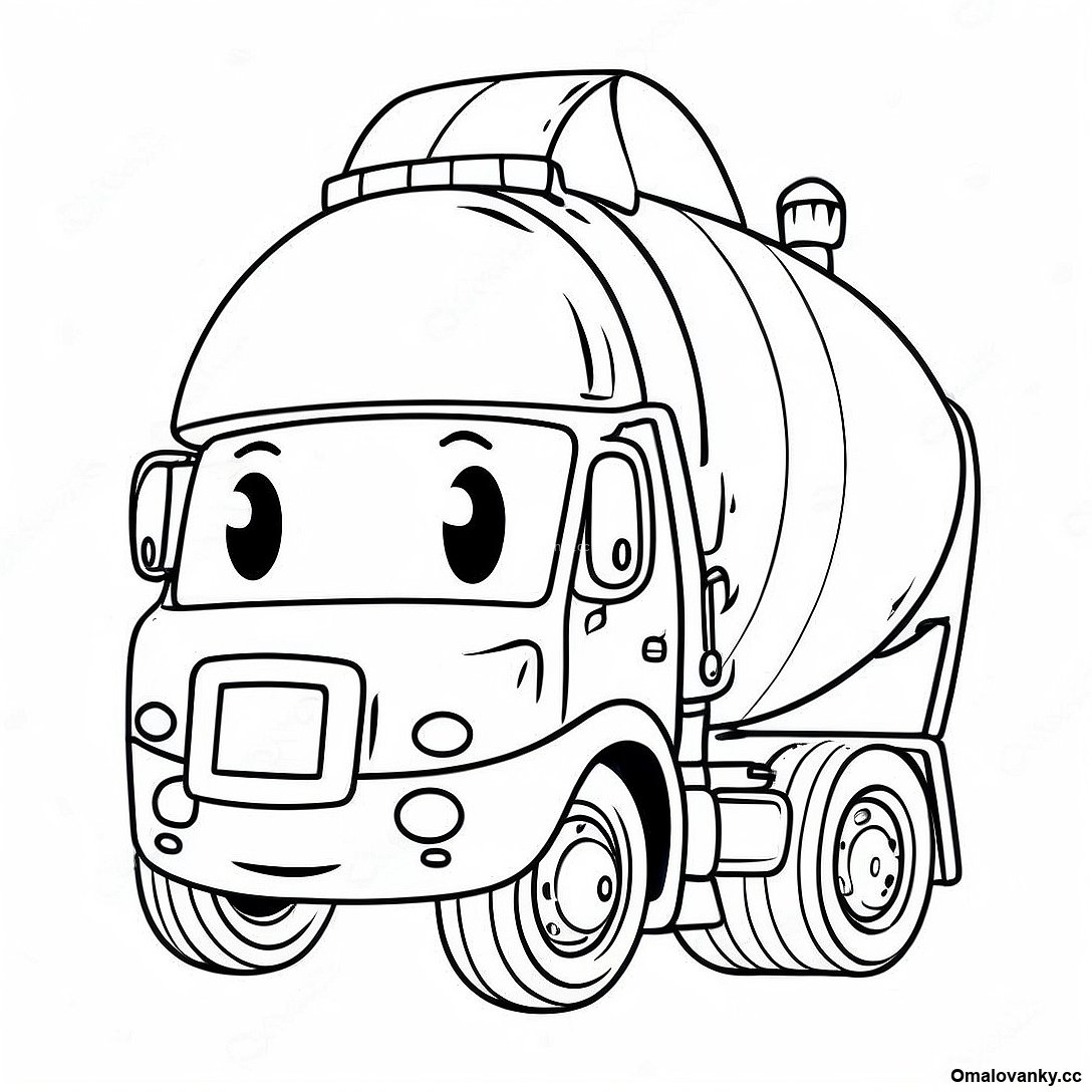 Stáhněte si tisknutelné PDF omalovánky Omalovánka Roztomilého Cementového Vozu S Usměvavou Tváří