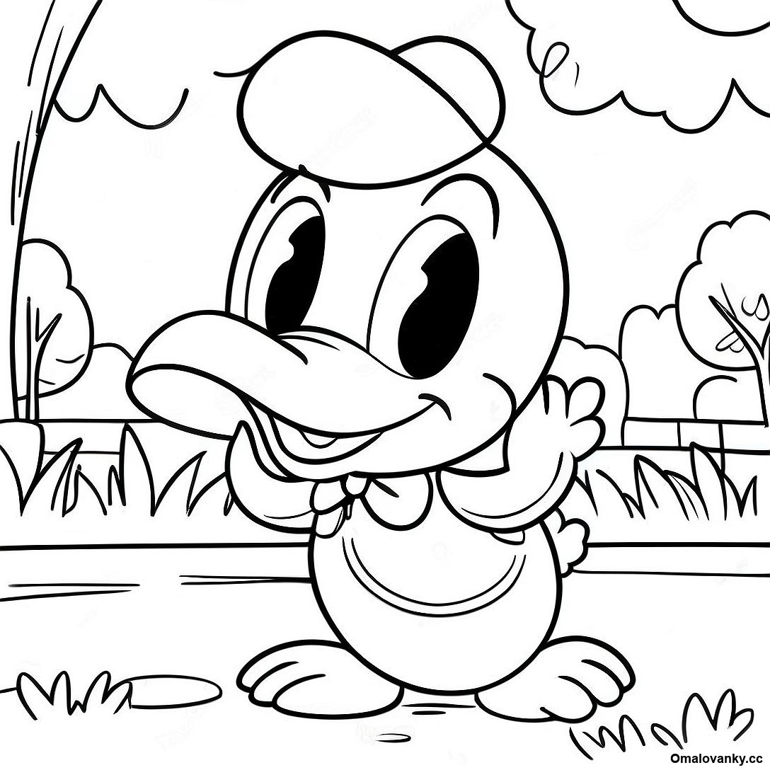 Stáhněte si tisknutelné PDF omalovánky Omalovánka S Donaldem Duckem Hrajícím Si V Parku