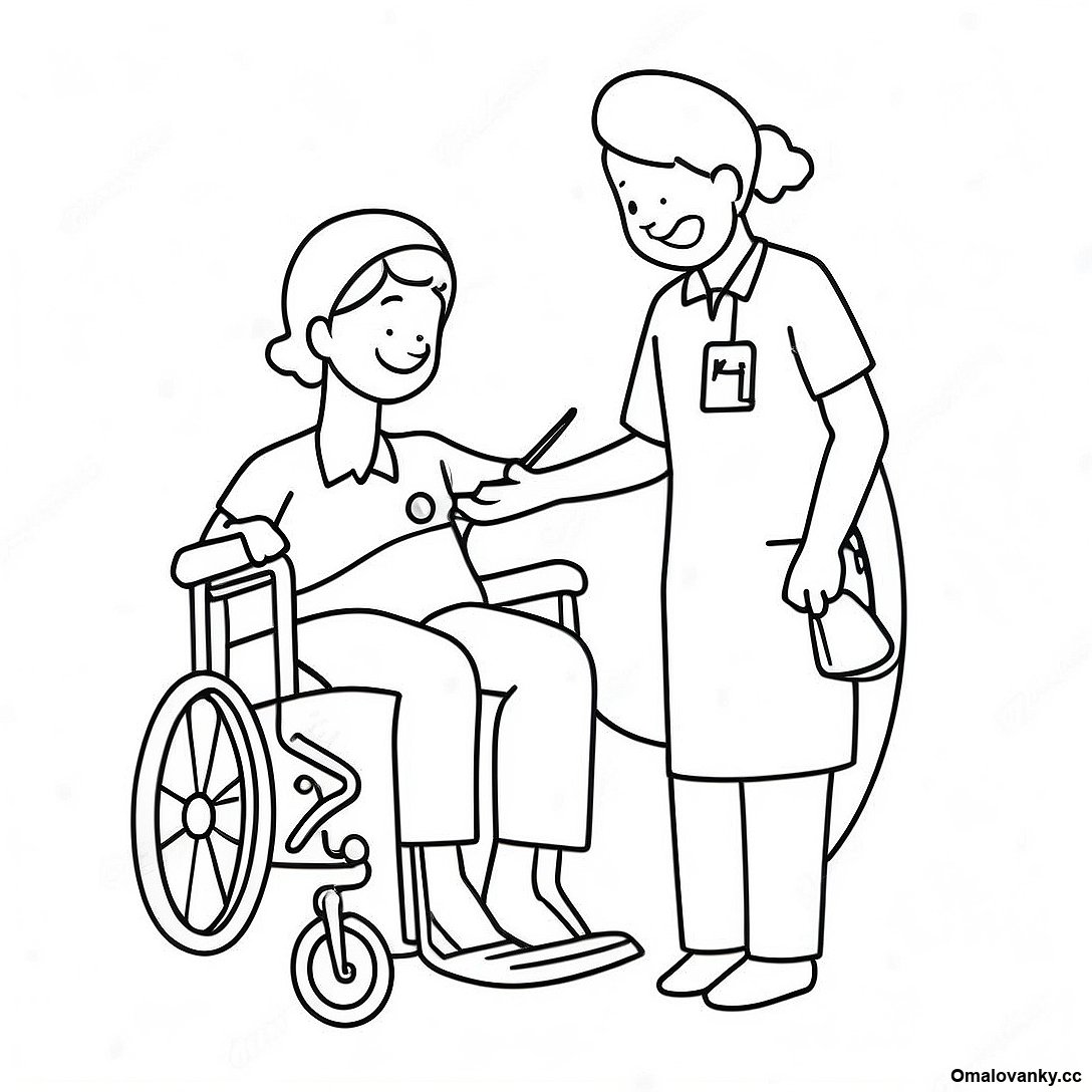 Stáhněte si tisknutelné PDF omalovánky Omalovánka S Veselou Sestrou, Která Pomáhá Pacientovi
