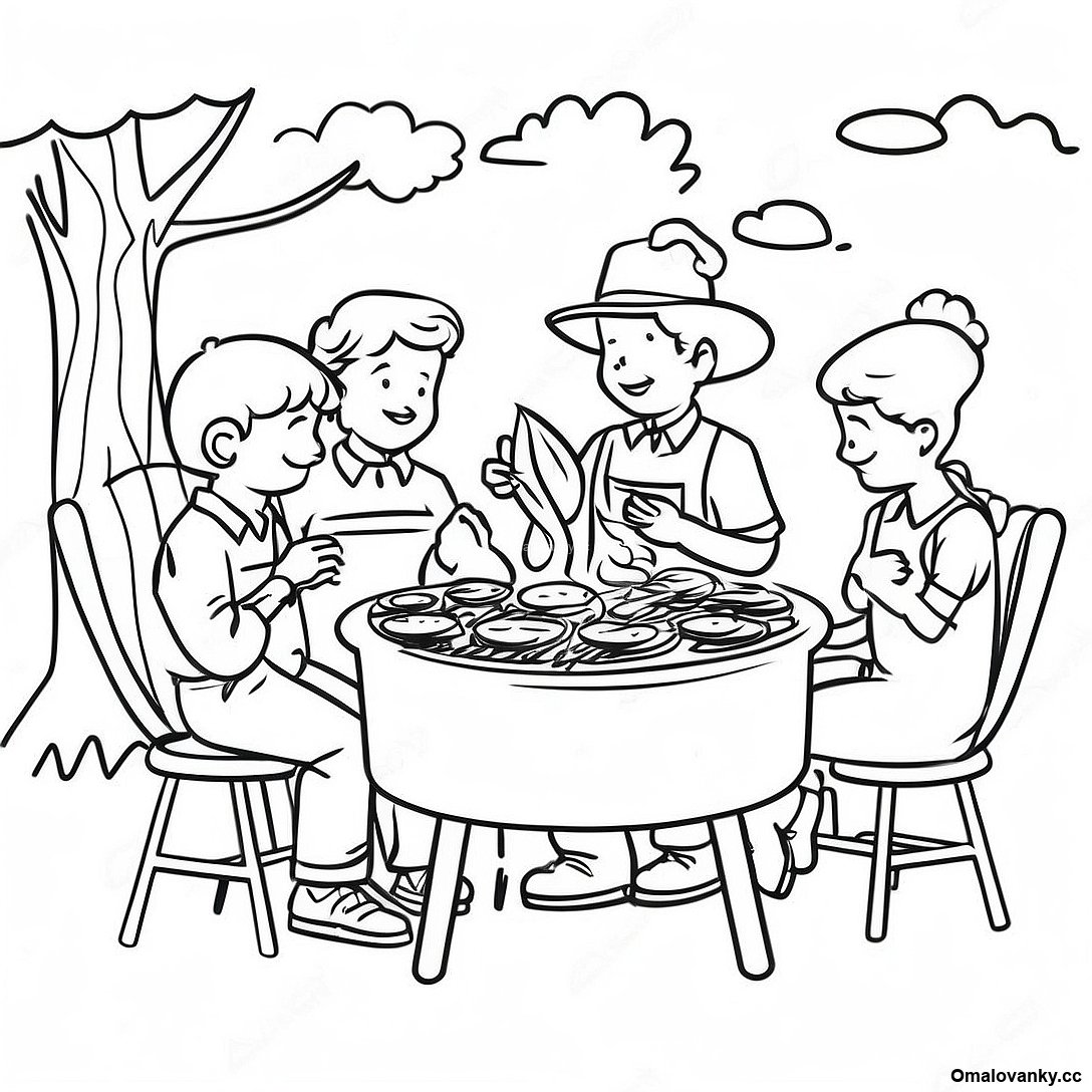 Stáhněte si tisknutelné PDF omalovánky Omalovánka S Veselým Grilováním