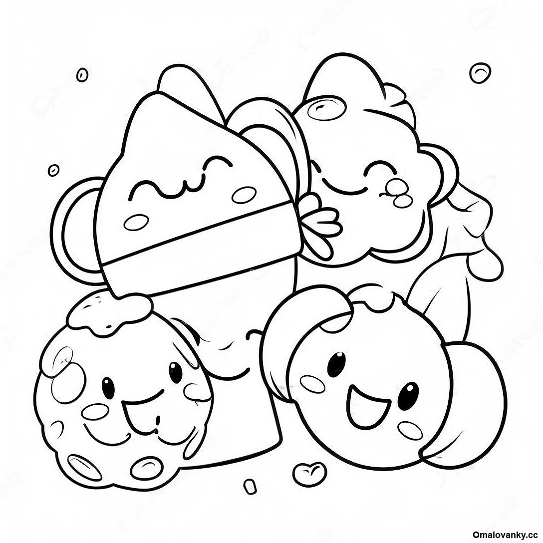 Stáhněte si tisknutelné PDF omalovánky Omalovánka Šťastných Num Noms Hrajících Si Spolu