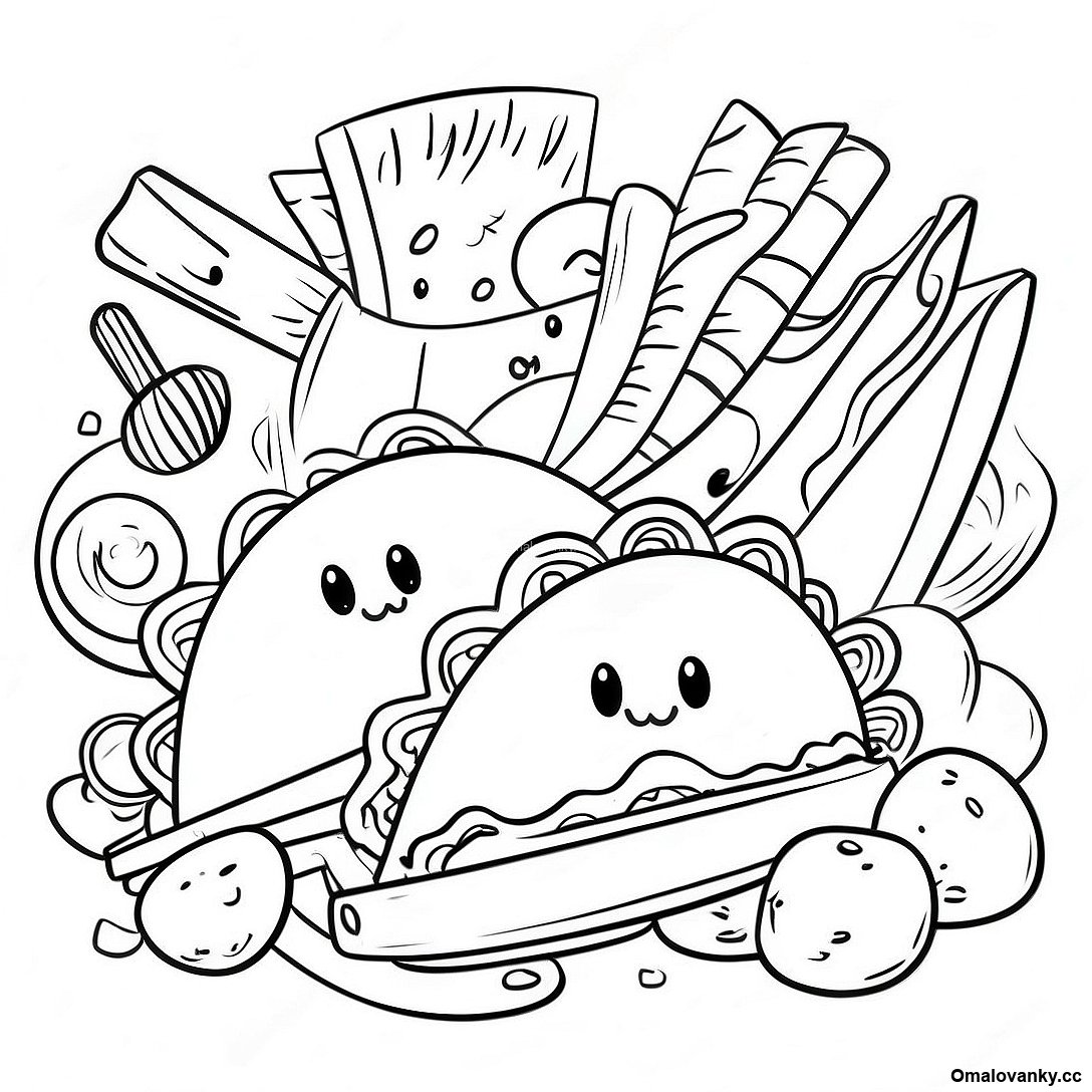 Stáhněte si tisknutelné PDF omalovánky Omalovánka Taco Párty Scéna