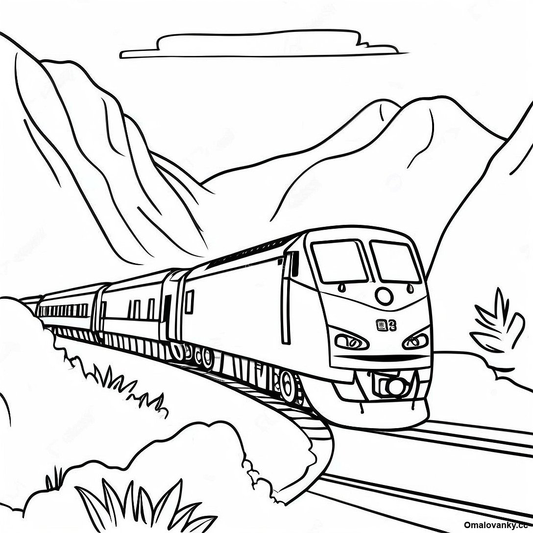 Stáhněte si tisknutelné PDF omalovánky Omalovánka Vlak Amtrak Projíždějící Horami