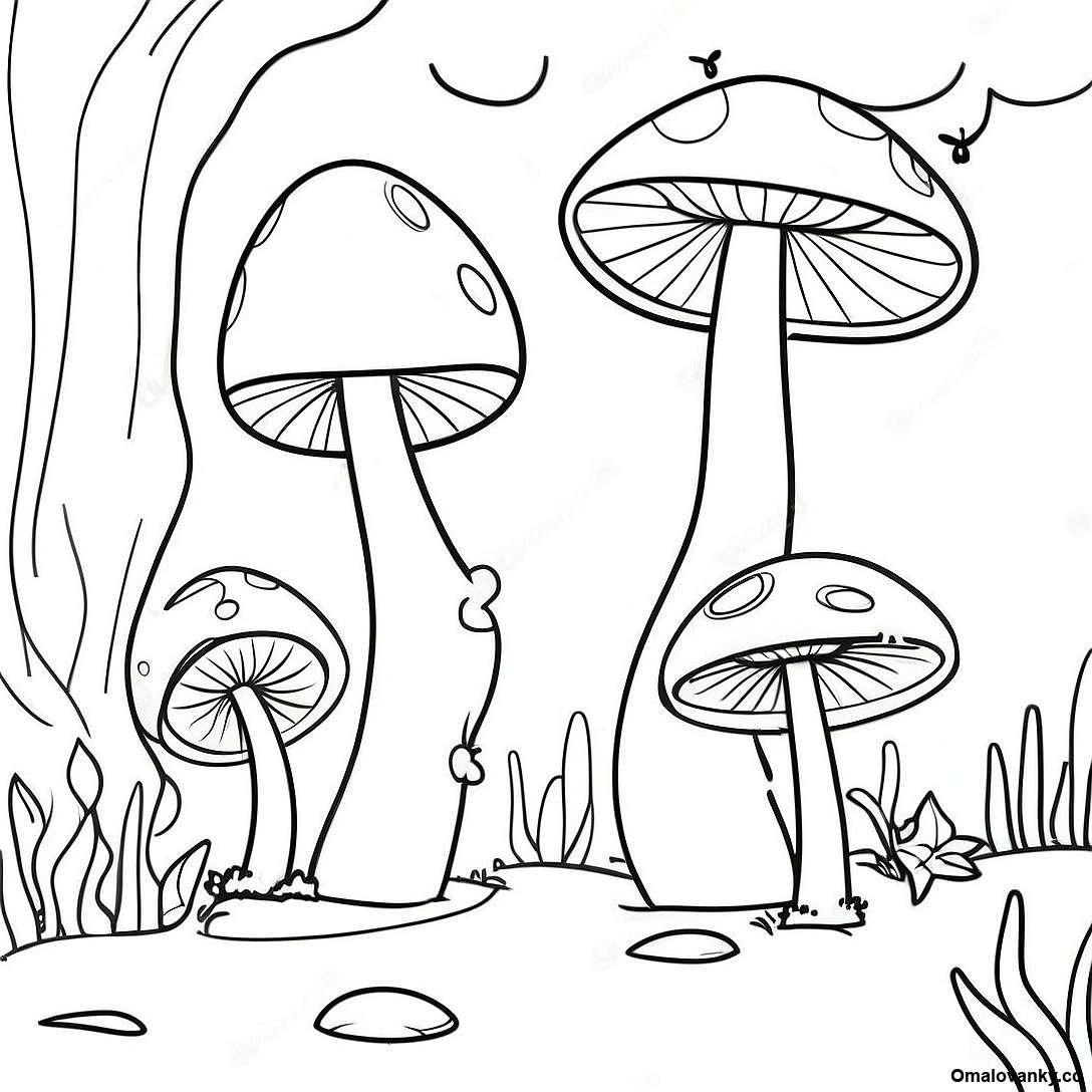 Stáhněte si tisknutelné PDF omalovánky Pohádková Houbová Lesní Omalovánka