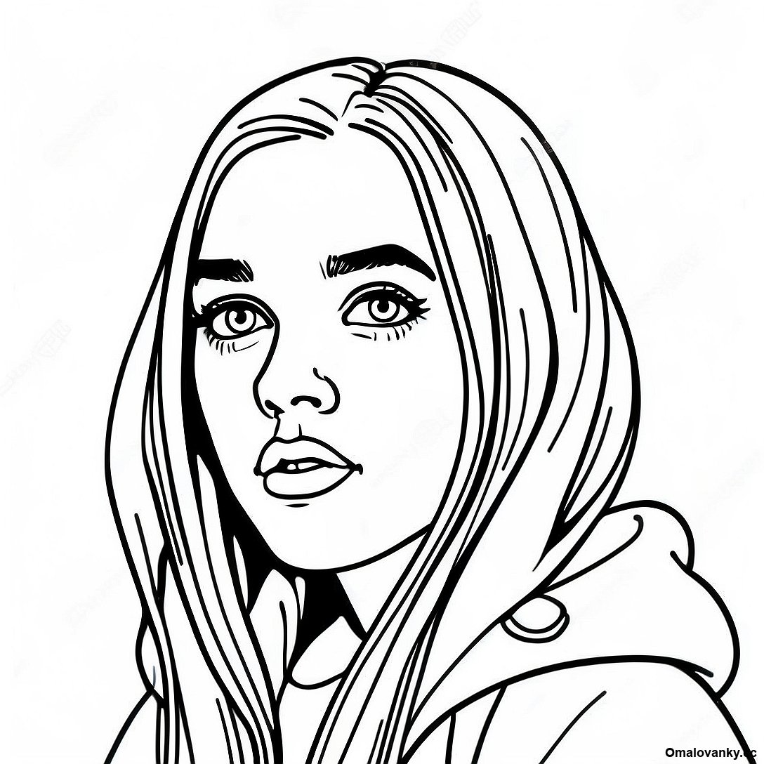 Stáhněte si tisknutelné PDF omalovánky Portrét Billie Eilish Omalovánka