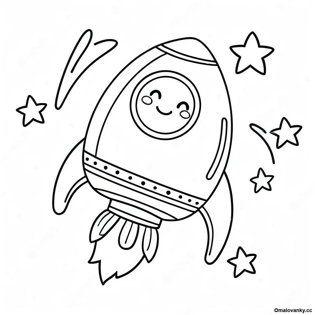 Stáhněte si tisknutelné PDF omalovánky Roztomilá Raketa S Usmívající Se Tváří Omalovánka