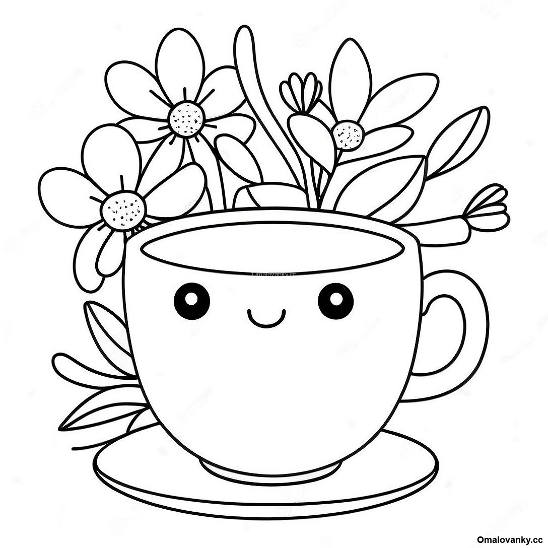 Stáhněte si tisknutelné PDF omalovánky Roztomilý Šálek Čaje S Květinami Omalovánka