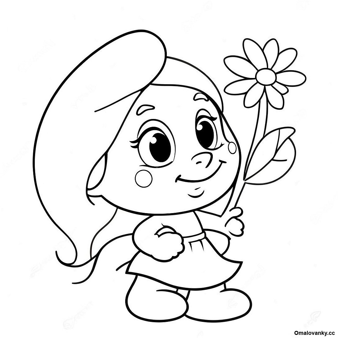 Stáhněte si tisknutelné PDF omalovánky Šmoulinka S Květinami Omalovánka