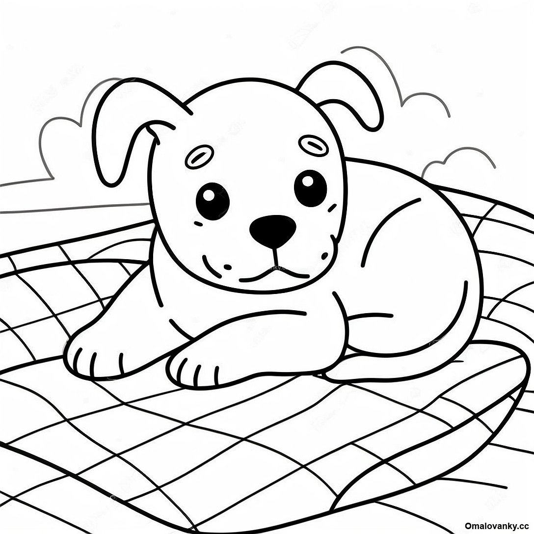 Stáhněte si tisknutelné PDF omalovánky Spící Štěně Na Dece Omalovánka