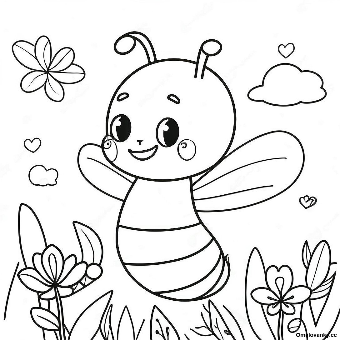 Stáhněte si tisknutelné PDF omalovánky Šťastná Včelka S Květinami Omalovánka